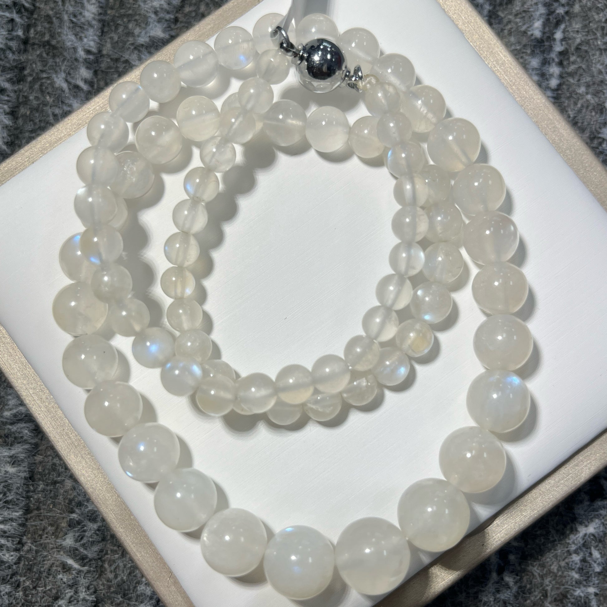 Moonstone With Starlight captures the ethereal beauty of moonlight with its luminous, translucent glow. This gemstone is prized for its subtle shimmer and delicate play of light, evoking a sense of calm and mystery. Ideal for those seeking a refined accessory, it enhances any collection with its timeless elegance and natural allure. Perfect for expert collectors and connoisseurs, this piece offers both aesthetic appeal and a connection to the celestial.